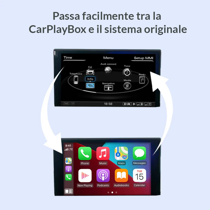 The CarplayBox from CarOptions integrates seamlessly with the infotainment system of your Audi for Apple CarPlay, Android Auto.
