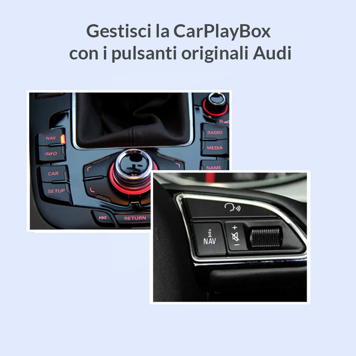 Control the CarPlayBox with the original controls of your Audi. Switch between CarPlay, Android Auto, and your original system with the press of a button.
