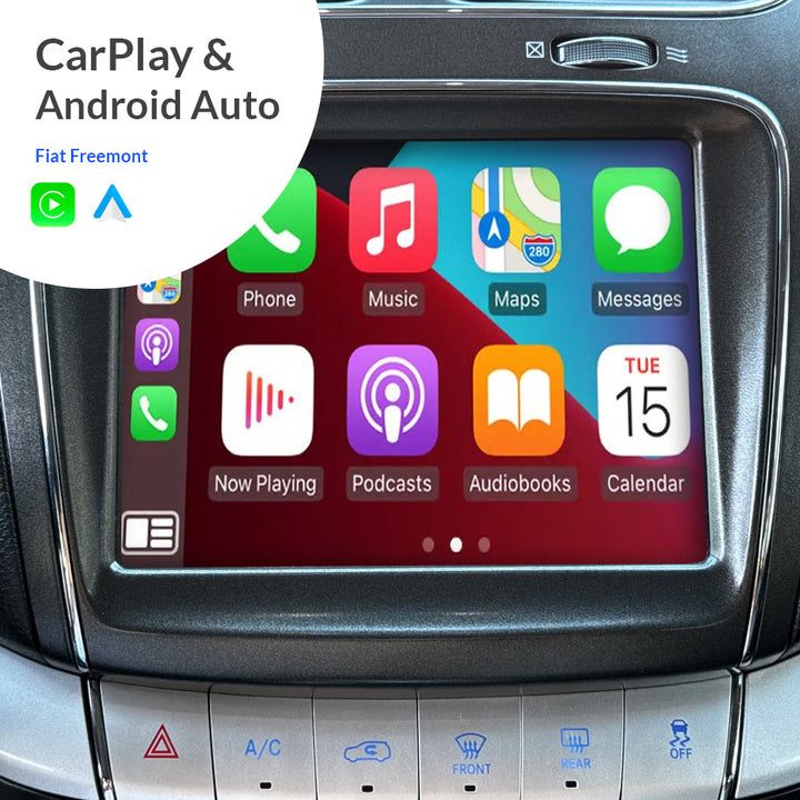 The CarplayBox from CarOptions integrates seamlessly with the infotainment system of your Fiat for Apple CarPlay, Android Auto.