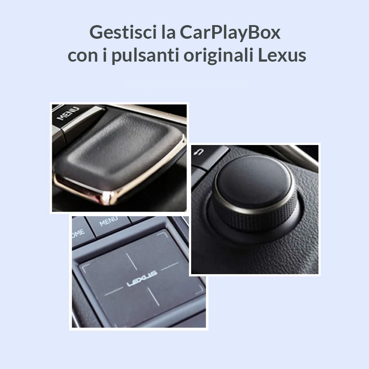 Control the CarPlayBox with the original controls of your Lexus. Switch between CarPlay, Android Auto, and your original system with the press of a button.