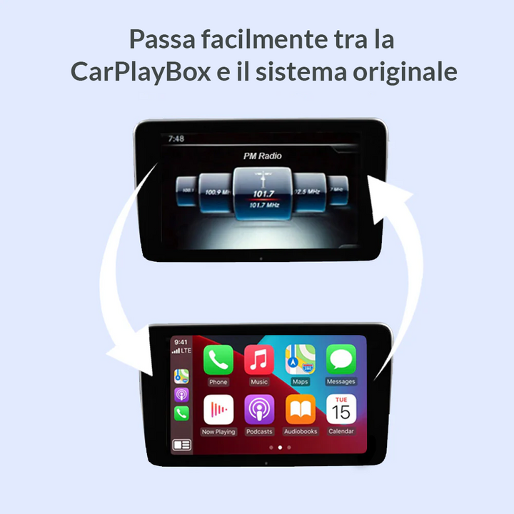 CarPlayBox is easy to install, placed discreetly behind the infotainment system, and starts automatically when you enter the car, without manual actions.