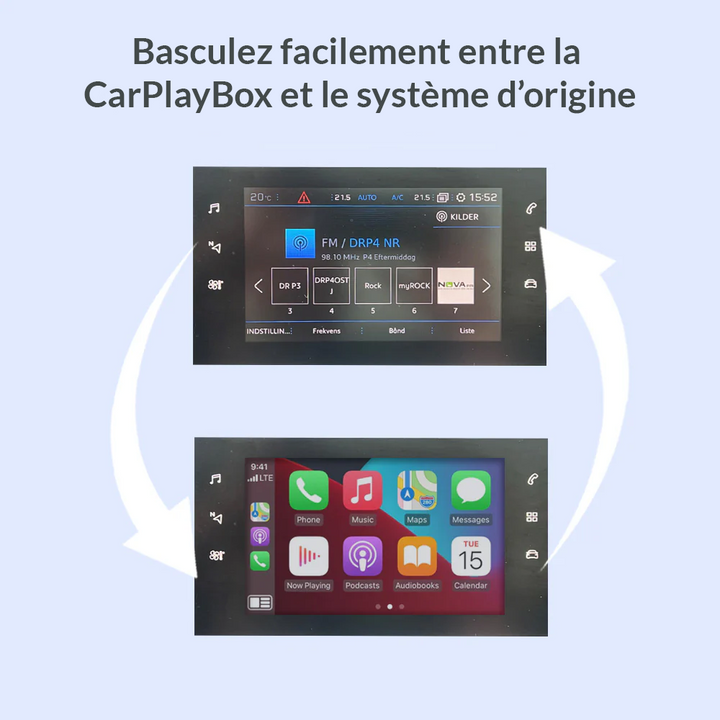 Control the CarPlayBox with the original controls of your Peugeot. Switch between CarPlay, Android Auto, and your original system with the press of a button.